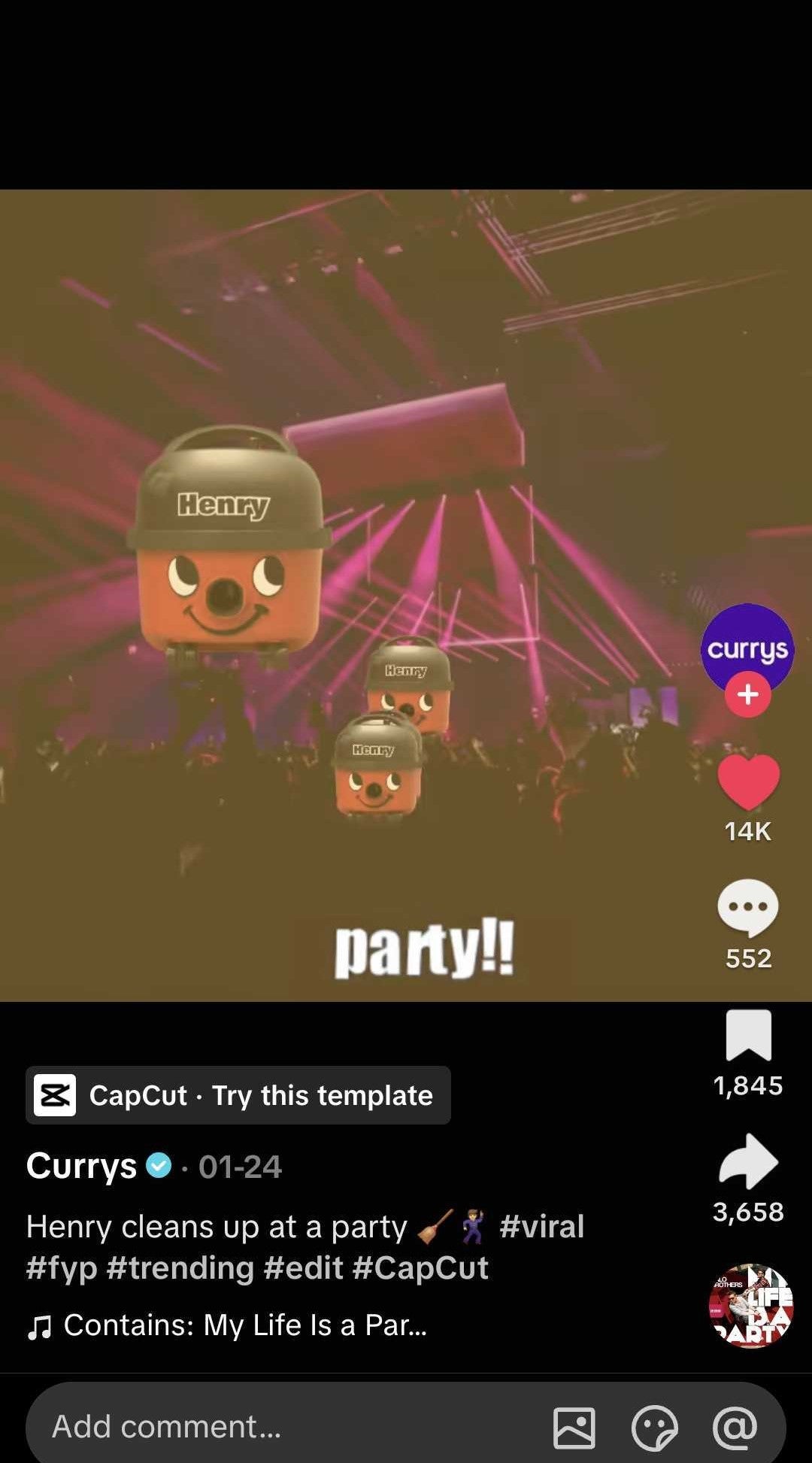 The trend features a CapCut template, in which users cut and paste a picture (be it a person or item) into a nightclub background. Once added, the inserted picture will start dancing around the screen, while the lyrics to “My Life is a Party” by ItaloBrothers appear on the screen.