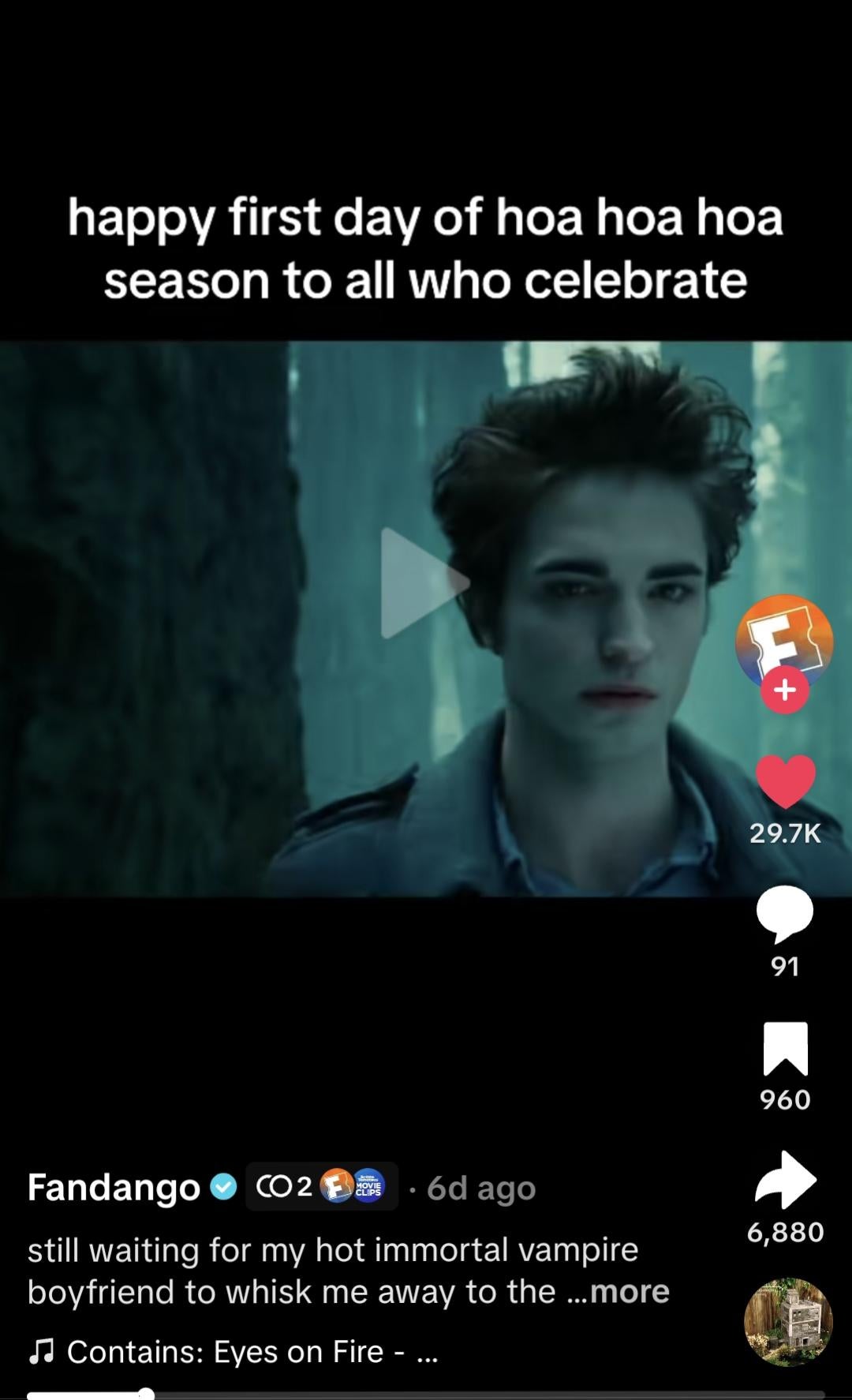 Put simply, the “hoa hoa hoa” part is a reference to the beginning lines of Blue Foundation’s “Eyes on Fire” song. The trend itself is also a joke towards the Twilight saga and the moody and cold atmosphere of the movies.